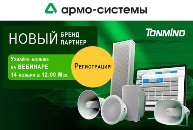 14 ноября, в четверг, в 12 часов по московскому времени присоединяйтесь к открытому вебинару по IP-системам громкого оповещения и музыкальной трансляции от нашего нового партнера – Tonmind.
